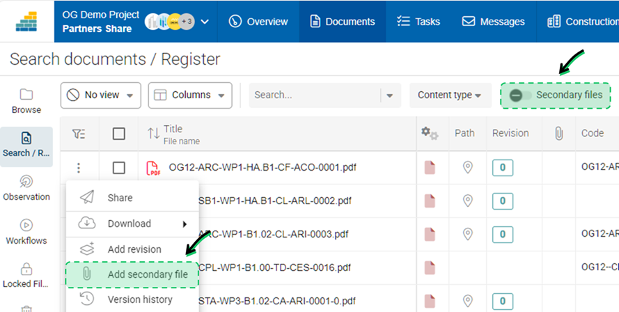 New features allow you to include or exclude secondary files in folders and the document registry. It is also possible to add a secondary file directly from the context menu of a primary file.